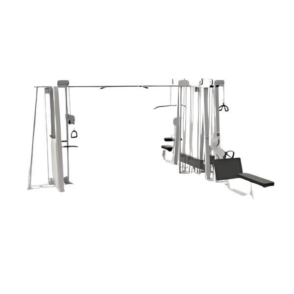 Maximiza la capacidad y funcionalidad de tu gimnasio con el Equipo Multiestación, un centro de entrenamiento de fuerza diseñado para acomodar a múltiples usuarios al mismo tiempo. Disponible en Deportes CDMX, esta unidad profesional combina varias estaciones clave para un entrenamiento de cuerpo completo.