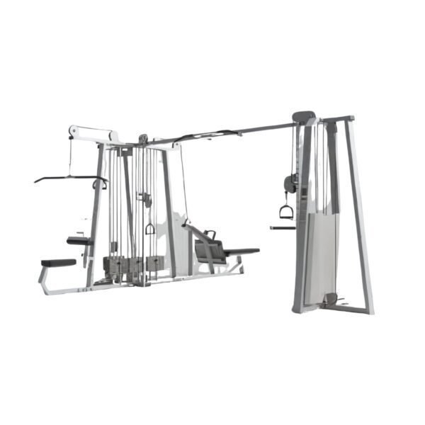 - Capacidad para Múltiples Usuarios: Diseñada con cinco pilas de pesas (stacks), permite que varios usuarios realicen entrenamientos de fuerza tradicionales simultáneamente, optimizando el flujo del gimnasio.